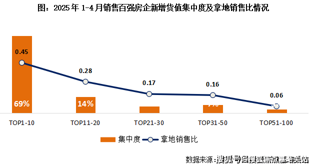 2025年1-4月发卖百强房企拿地集中度仍然维持高位,